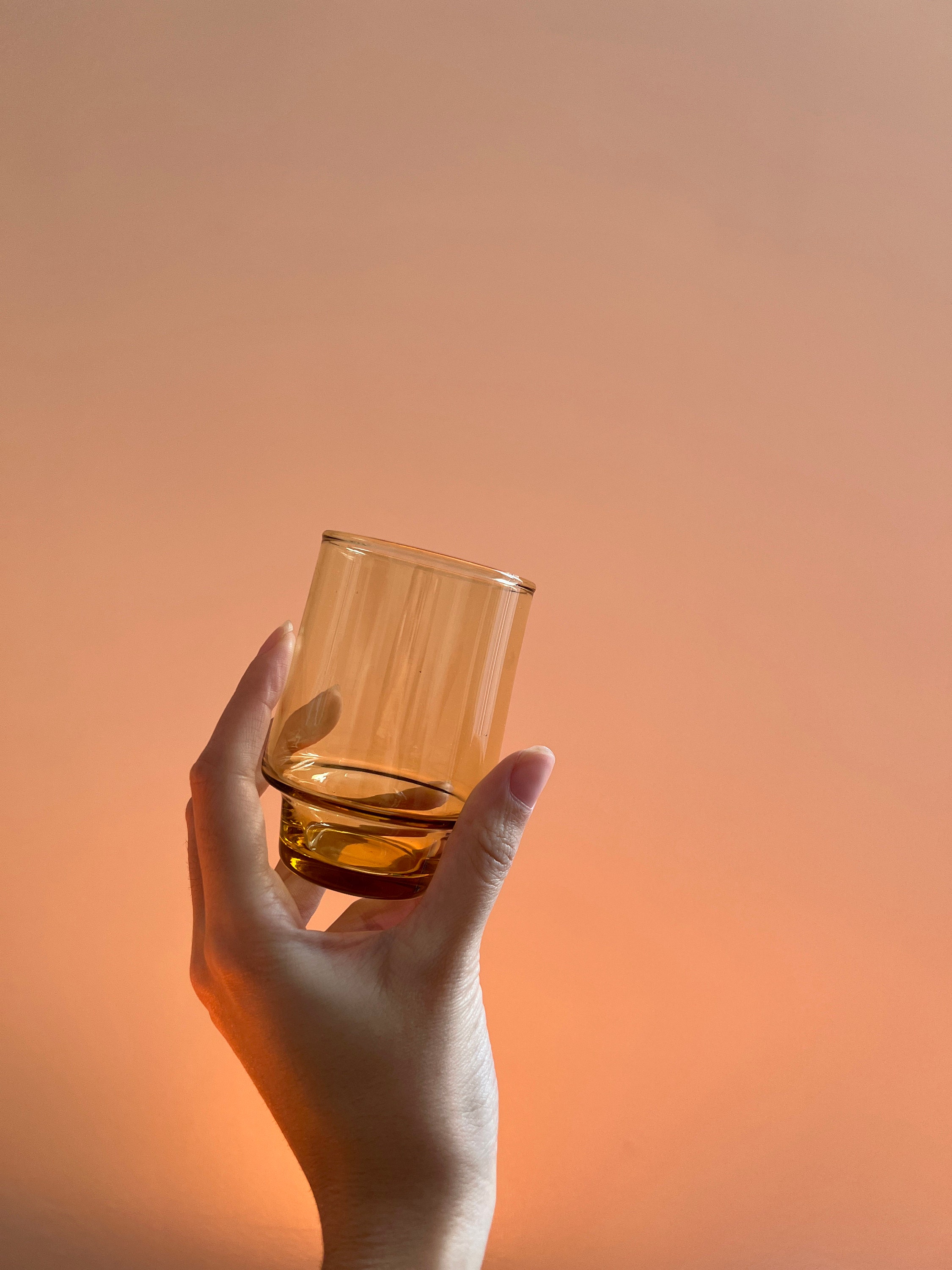 Vintage Small Drinking Whiskey Scotch Cocktail Glasses Set of 6 - Yellow Amber Glass